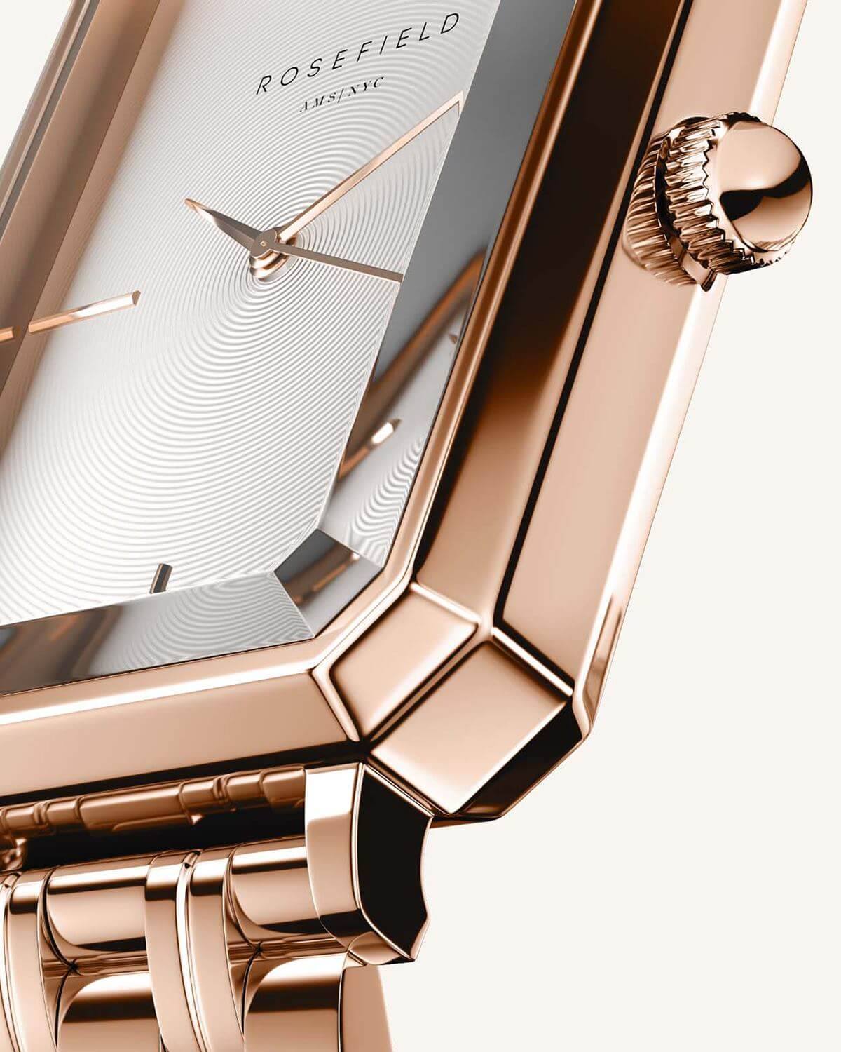 The Octagon is Rosefield's newest collection of modern watches – an instant classic. The rare octagonal face shape and polished 5-link bracelet recall 1920s elegance, redefining the watch as fashion accessory.